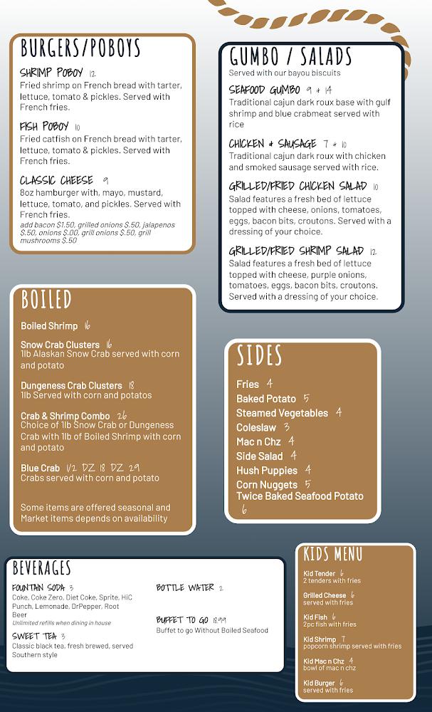A dedicated kid's menu ensures younger diners enjoy meals tailored just for them. For those on the go, a to-go buffet option allows guests to savor Cajun flavors anywhere. The choices combine simplicity with deliciousness, perfect for a satisfying meal.